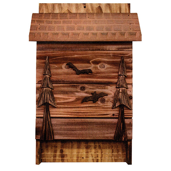 Bats are enchanting creatures, and they need our help. Invite them to your backyard and enjoy the beauty, the magic, and the natural pest control they provide. Both functional and beautiful, the back is made from sturdy marine-grade plywood, while aromatic redwood cedar wraps the rest—so fragrant you might be tempted to keep it indoors! Inside, two cozy compartments let bats choose their perfect spot. The back stays warm and snug, while the front is cooler—giving these tiny night-time acrobats just what they need to flutter comfortably. Mount it 10 to 15 feet off the ground in a sunny spot, and watch as your garden gains a team of mosquito-chomping champions. A single bat can snack on up to 1,000 mosquitoes an hour, as well as other pesky insects. 24” x 14” x 5”, 11 lbs